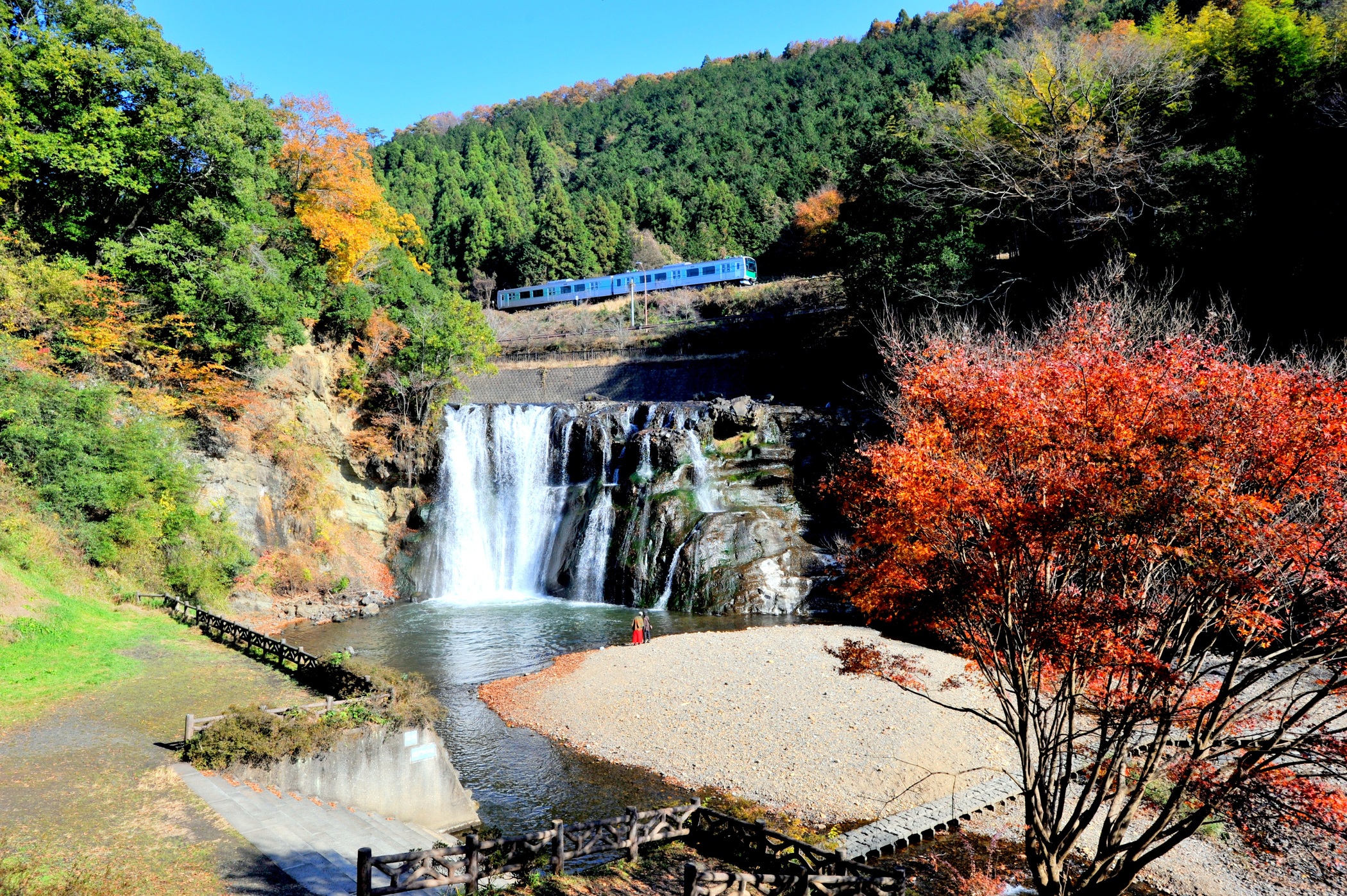 江川にある高さ20メートル、幅65メートルにわたって流れ落ちる滝です。大蛇が棲むという伝説があり、その名前の由来にもなっています。初夏の新緑や秋の紅葉など、季節ごとに変わる滝の表情が素晴らしく、何度でも訪れたくなる場所です。